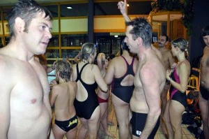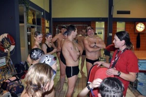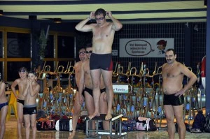 Wir trainieren zusammen und wir fahren zusammen zu den Wettkämpfen, ab und an machen wir auch mal etwas zusammen außerhalb des Schwimmbades.