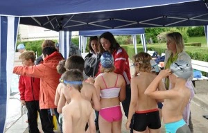 Derart gestärkt war das letzte Stück schnell geschafft und die Kinder mussten ab ins Wasser – Das Ausdauer-Schwimmabzeichen in der gelben Stufe 1 stand auf dem Plan. Das Wetter herrlich und die lange Bahn noch nie getestet, ging es im Freibad sofort in die Vollen.
