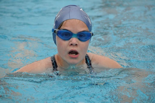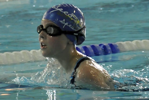 Emilia zeigt erneut eine deutliche Leistungsverbesserung über 50 m Freistil. Sie schwamm 0:56,32.