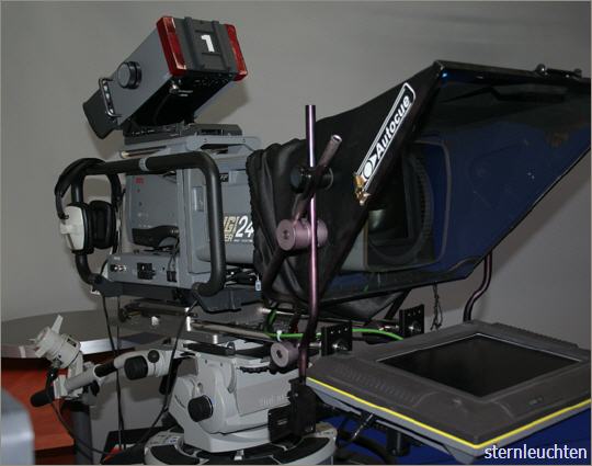 Es ging es weiter zu einem Video über den Sender an sich und dann in ein Studio, in dem jeden Abend die Nachrichten aufgezeichnet werden. Ein echt trister Arbeitsplatz – Millionen Lampen, zwei Kameras für zusammen mal eben 500.000 Euro, viel blaue Farbe und nix von dem glänzenden Marmorfußboden, der jeden Abend im Fernsehen zu sehen ist.