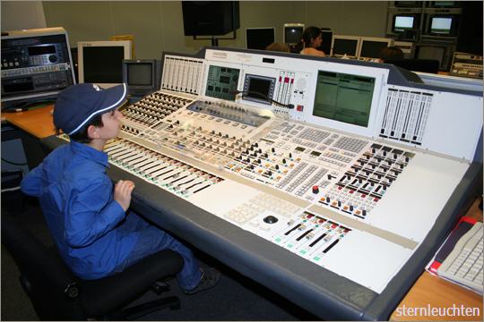 Der Blick in die „Schaltzentrale“ eines Senders war beeindruckend, Knöpfe über Knöpfe (ich hoffe dass heute noch alle gehen), Monitor neben Monitor und alle bringen es zusammen auf einen Punkt. Einer den Ton, einer die Texte unter den Bildern, einer der die Bilder ineinander schiebt, damit es immer schön rund aussieht, einer bringt alle Farben auf einen Nenner, einer macht alle Stimmen gleich laut…. Wir wissen aber nun Bescheid. Ich hoffe, die Kinder vergessen es nie wieder: Fernsehen ist nur Show. Nix ist wie es scheint, alles wird nur für den Schein gemacht.